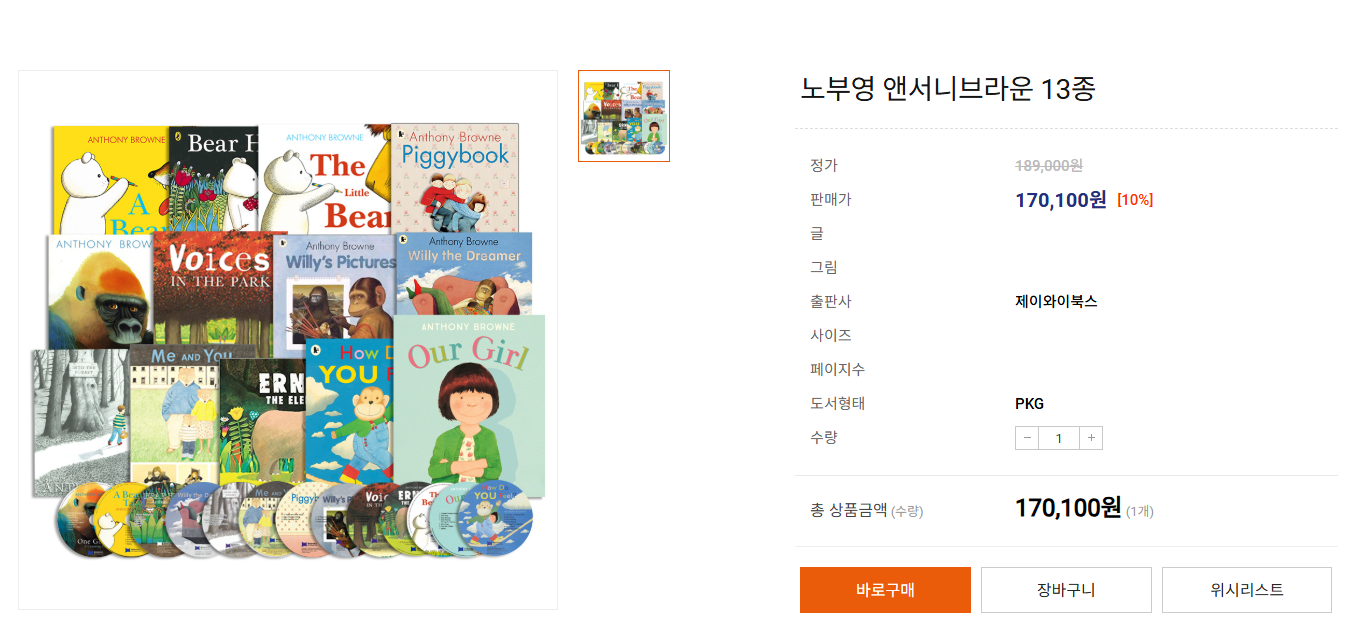앤서니브라운 작가 영어그림책 13권을 모아둔 전집 세트에요.