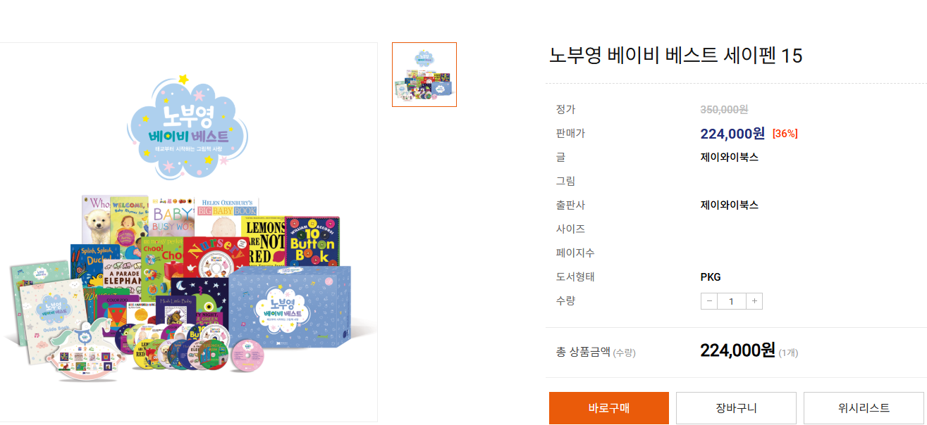 저도 노부영 꽤나 구입했었는데요. 전집으로 구입하려면 3번인 '노부영 베스트 세이펜 15'이 제일 낫긴 했었어요. 두돌 전은 '1번 베이비' 또는 '5번 마더구스'도 괜찮긴 하구요.